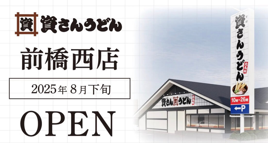 『資さんうどん 前橋西店』として、2025年8月下旬のオープンを予定しています。
