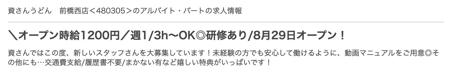 求人情報によると、『資さんうどん 前橋西店』のオープンは2025年8月29日を予定しているとのこと!