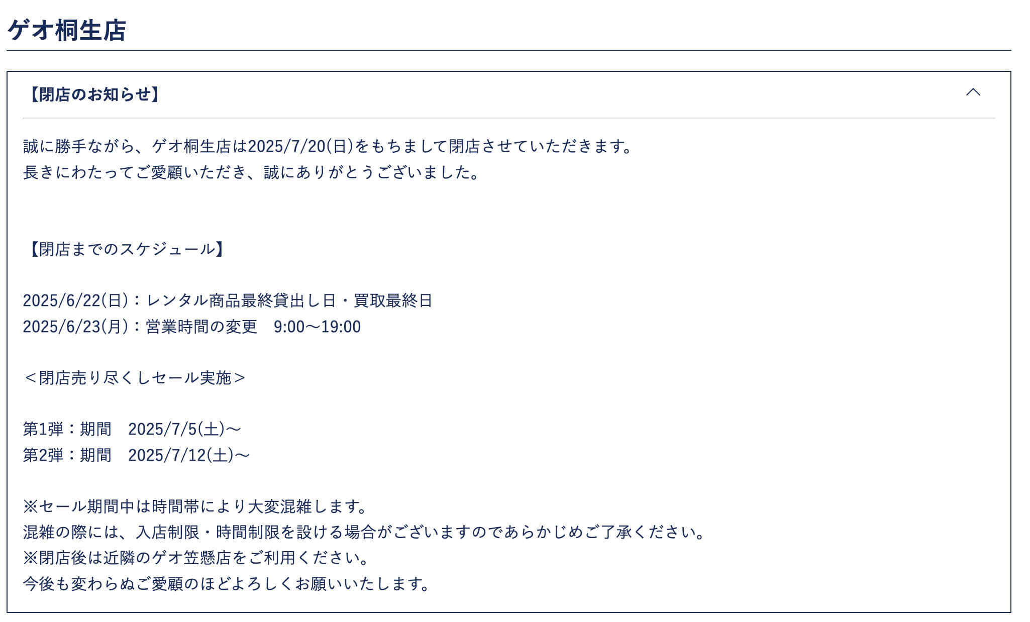 『ゲオ桐生店』閉店までのスケジュール