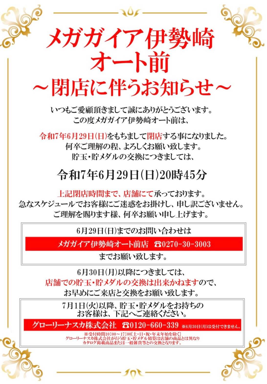 『メガガイア伊勢崎オート前』が2025年6月29日をもって閉店へ