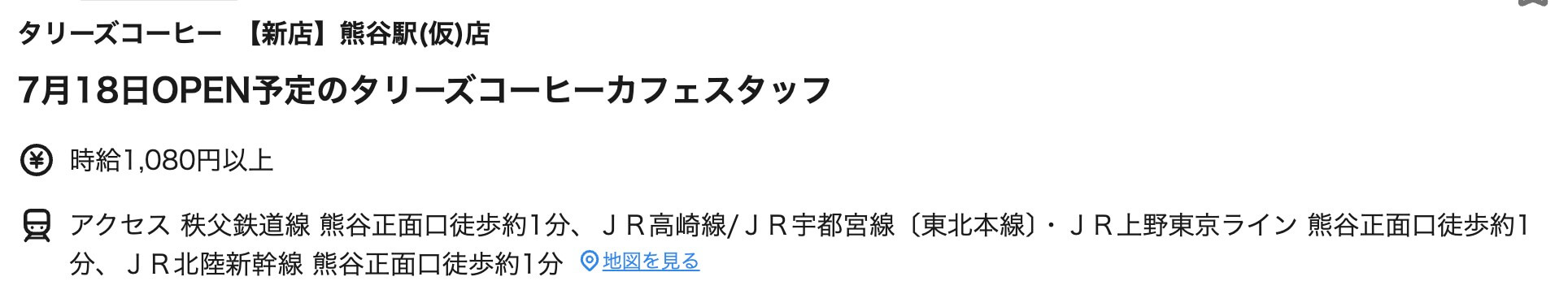 - 店舗名:タリーズコーヒー 熊谷駅店(仮)