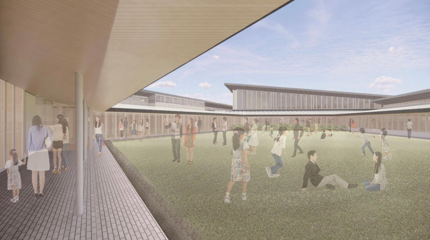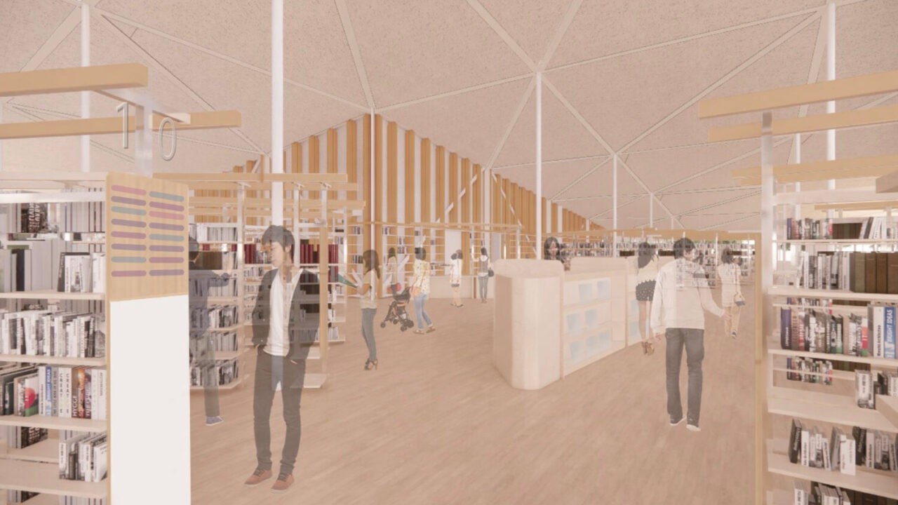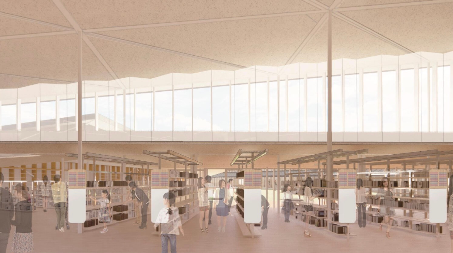 施設内には、移転リニューアルとなる図書館をはじめ、子育て・健康センター、多目的ホール、屋内遊戯場(キッズスペース)、そしてカフェなど、多世代が楽しめる設備が充実しています。
