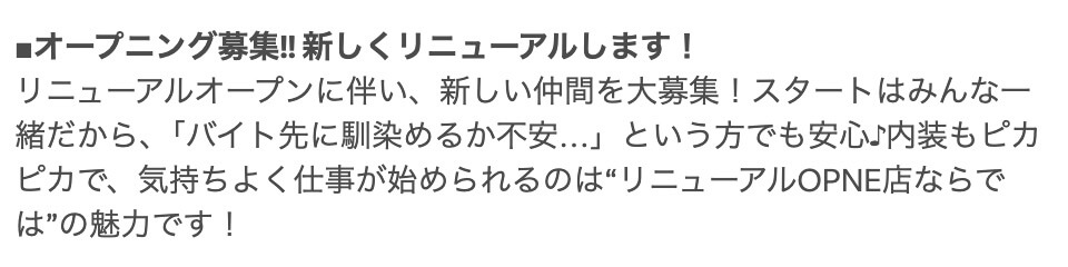 気になる求人情報に「リニューアルOPEN」の文字が!