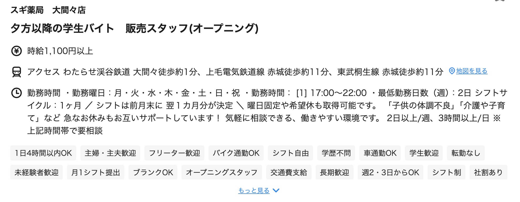 ▼『スギ薬局 大間々店』の求人情報より。