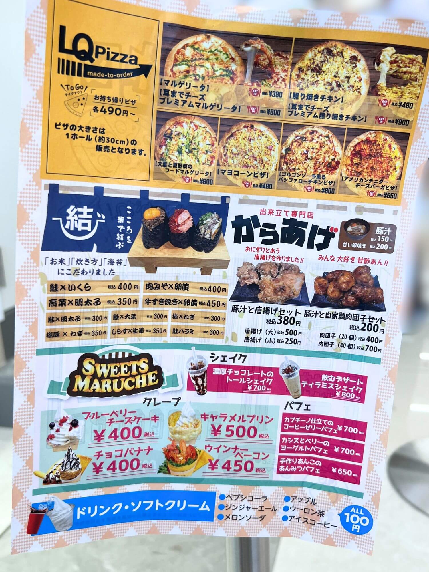ピザ、おむすび、スイーツなどが食べられるみたい。