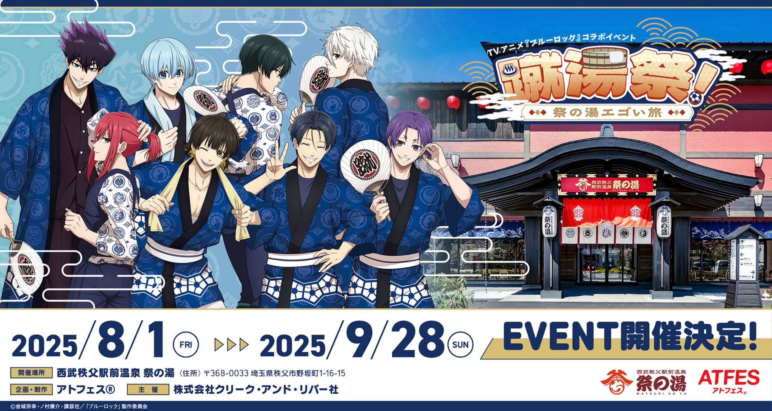 埼玉県秩父市にある人気の温浴施設「西武秩父駅前温泉 祭の湯」で、話題のアニメ『ブルーロック』とのコラボイベントが開催されます!