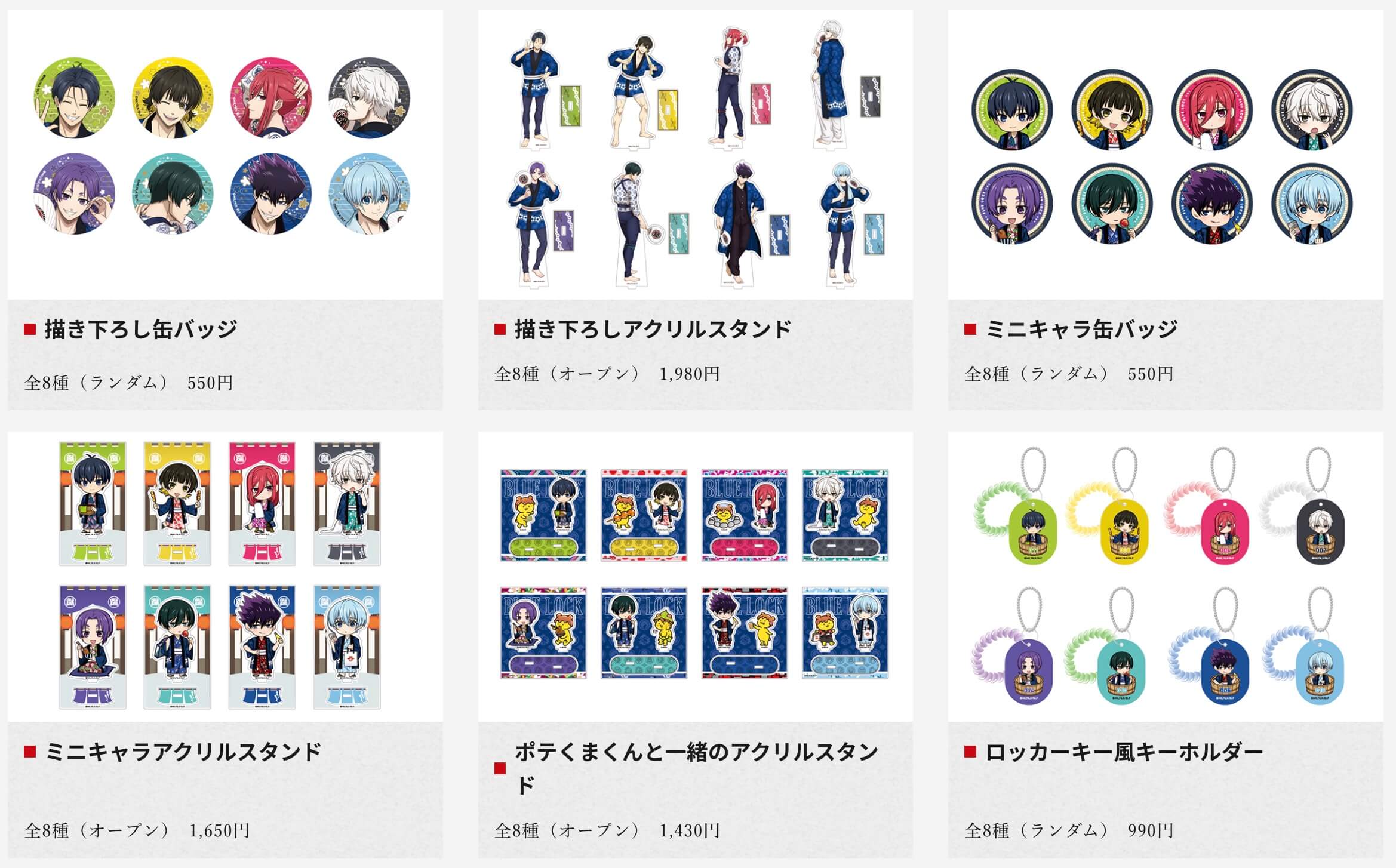 物販では、描き下ろしの缶バッジやアクリルスタンド、カード類のほか、