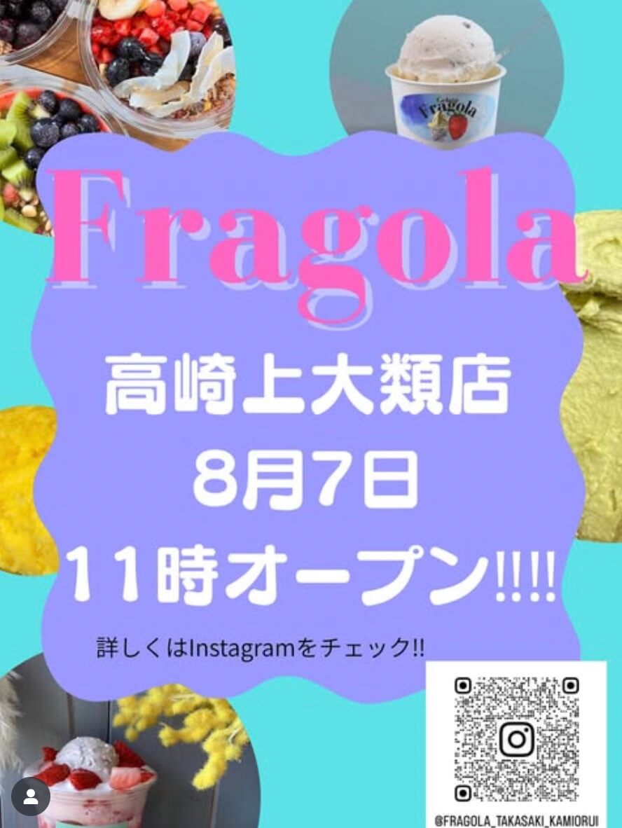 2025年8月7日(木)伊勢崎で人気のフルーツスイーツ店 『Fragola(フラゴラ)高崎上大類店』 がオープン予定です。