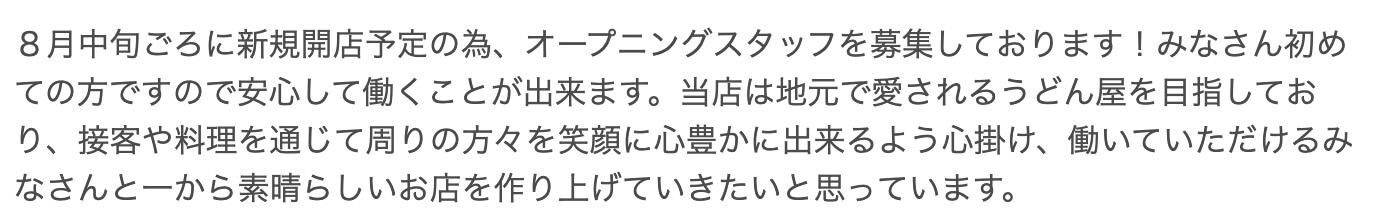 ▼『讃岐うどん 八重』のオープン情報(求人情報より)