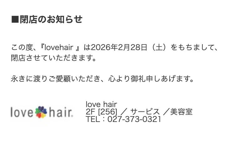 美容室2店舗の閉店が新たに判明