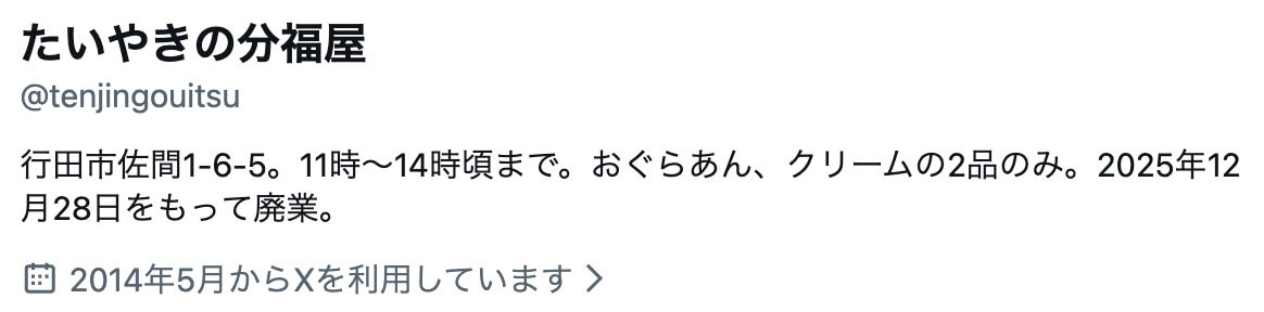 店主— たいやきの分福屋 (@tenjingouitsu) December 13, 2025