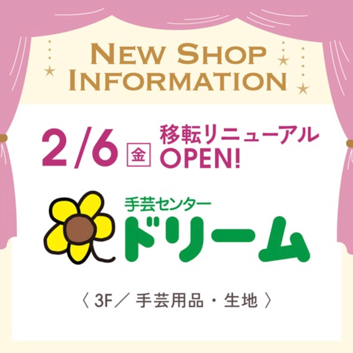 『手芸センター ドリーム スマーク伊勢崎店』は現在2階で営業していますが、2026年2月6日(金)に3Fへ移転リニューアルオープン予定とのことです。