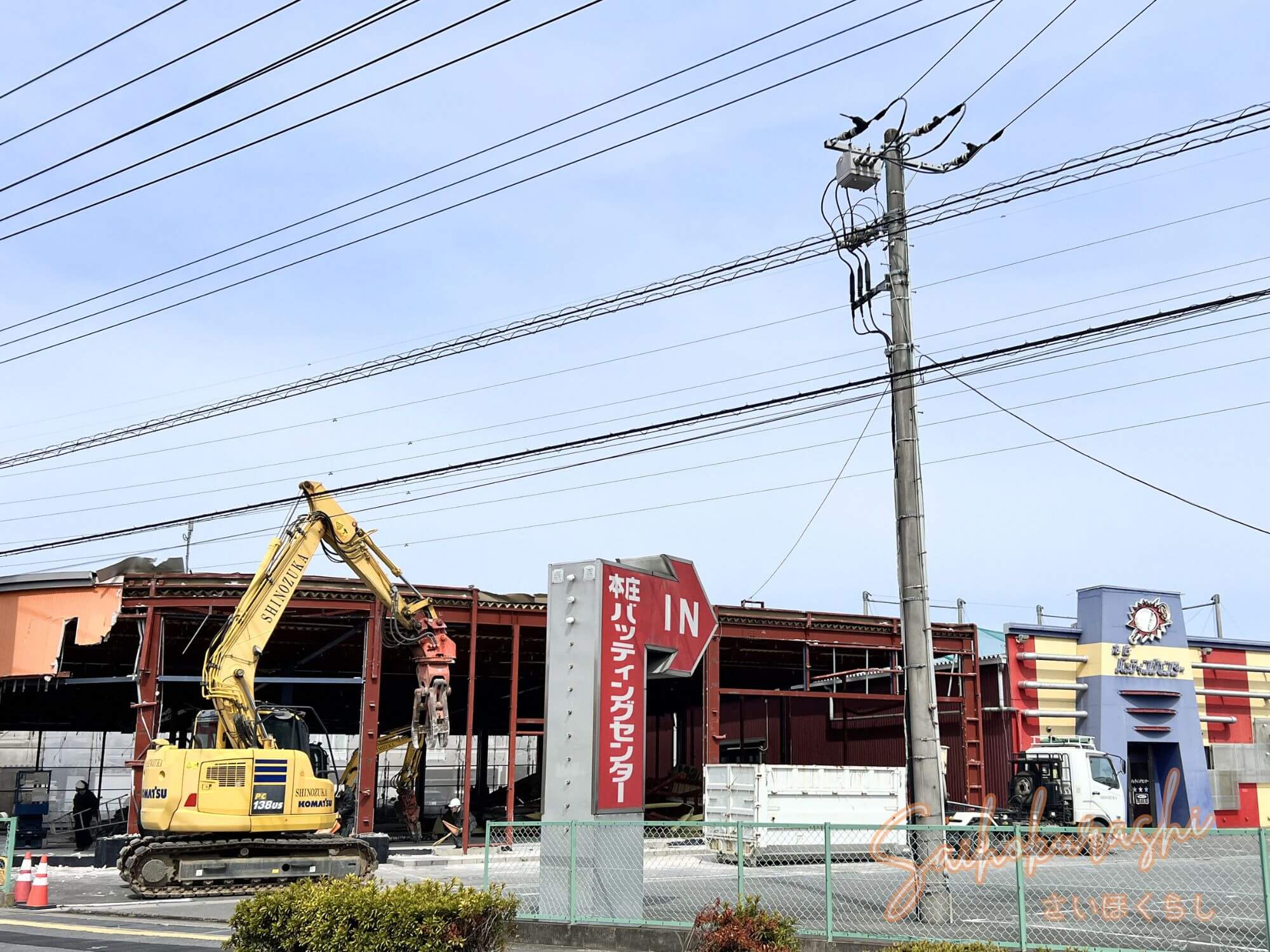 解体が進む「ムー大陸 本庄店」(本庄バッティングセンター隣接)