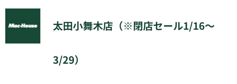 『マックハウス 太田小舞木店』の閉店情報(公式サイトより)