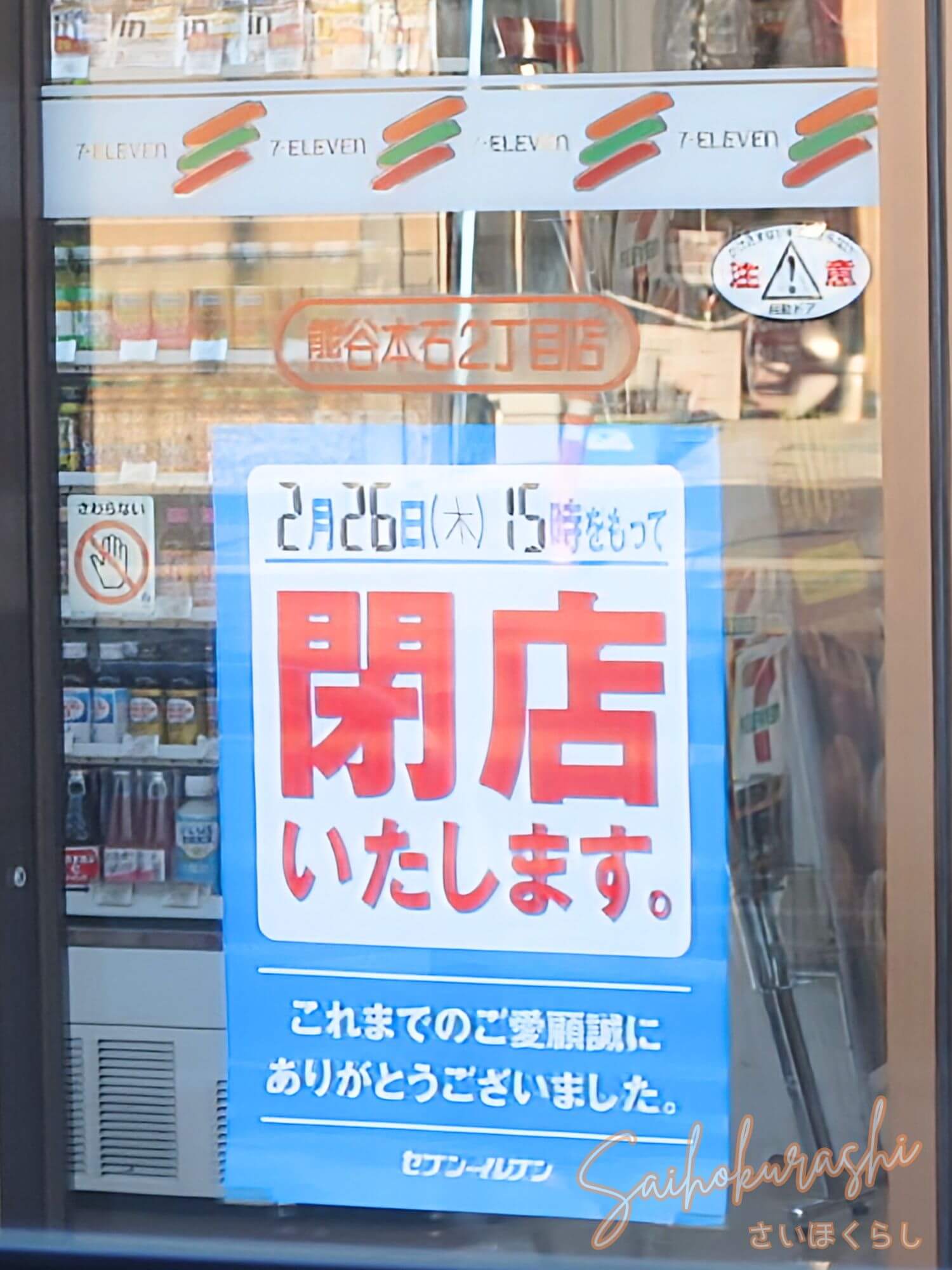 『セブンイレブン 熊谷本石2丁目店』の閉店情報(店頭掲示より)