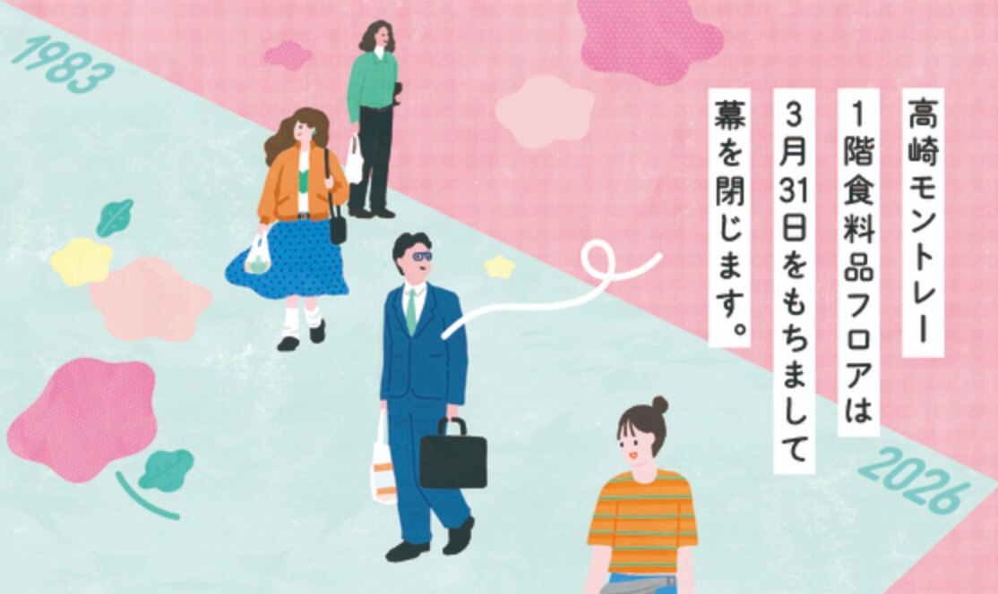 群馬県高崎市八島町の「高崎モントレー」で、1階食料品フロアが2026年3月31日をもって閉店することが発表されました。