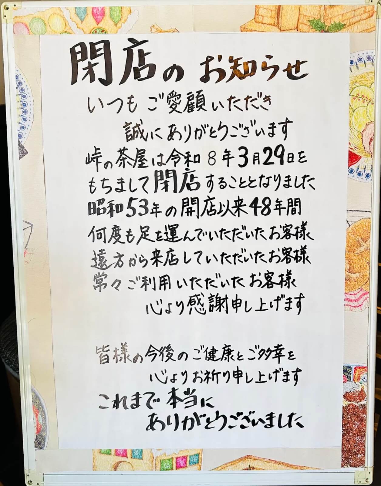 足利市『峠の茶屋』が2026年3月29日をもって閉店へ