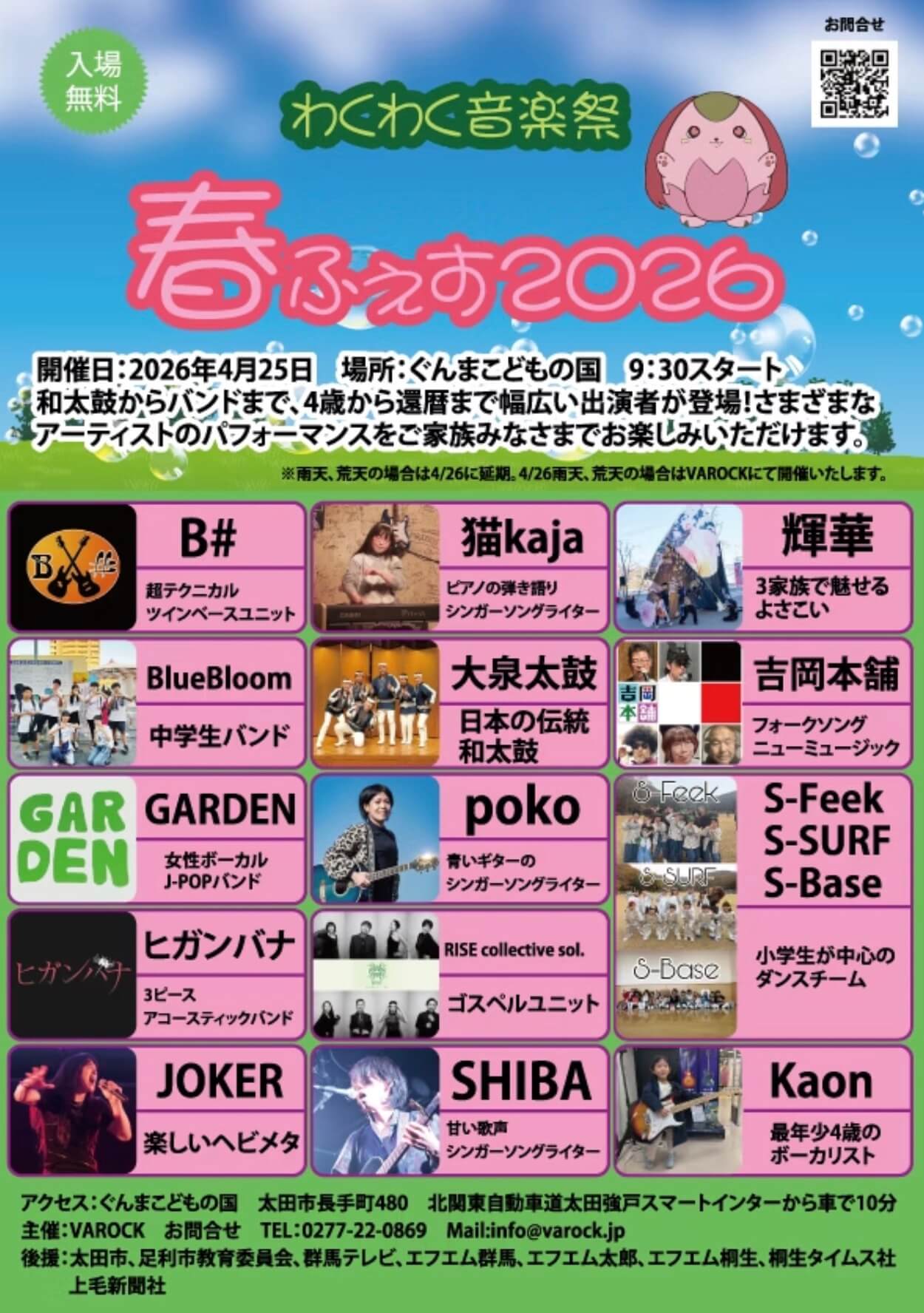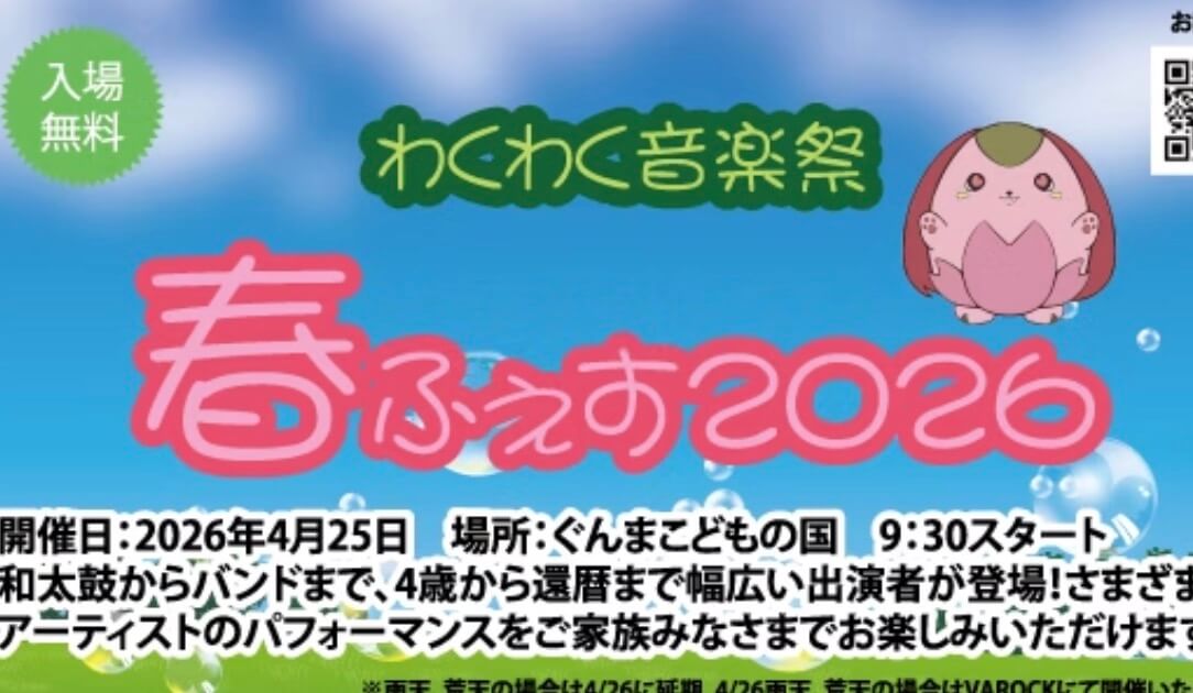 群馬県太田市長手町のぐんまこどもの国で、『春ふぇす2026』が2026年4月25日(土)に開催されます。