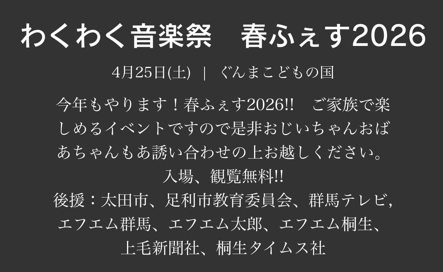 【イベント】ぐんまこどもの国で『春ふぇす2026』開催へ|親子で楽しめる無料野外音楽イベント