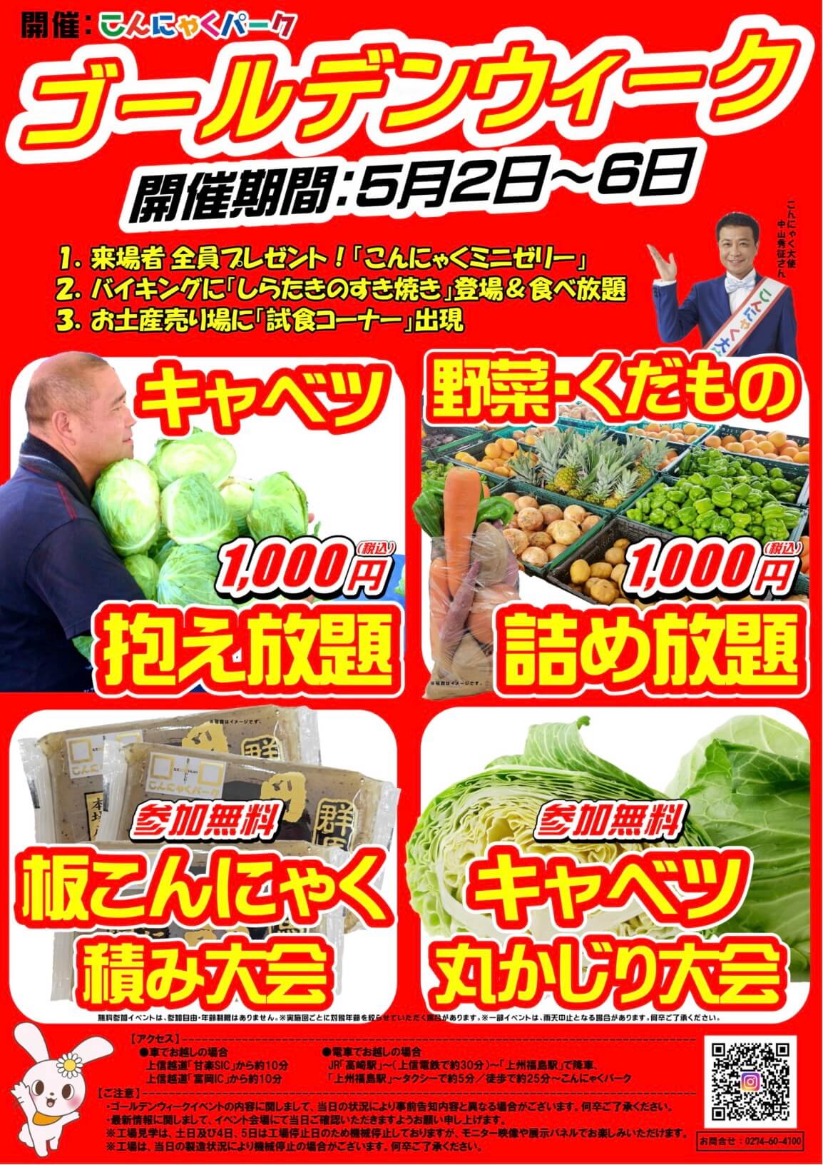 - 主な内容:こんにゃくバイキング、キャベツ抱え放題、各種参加型イベントなど