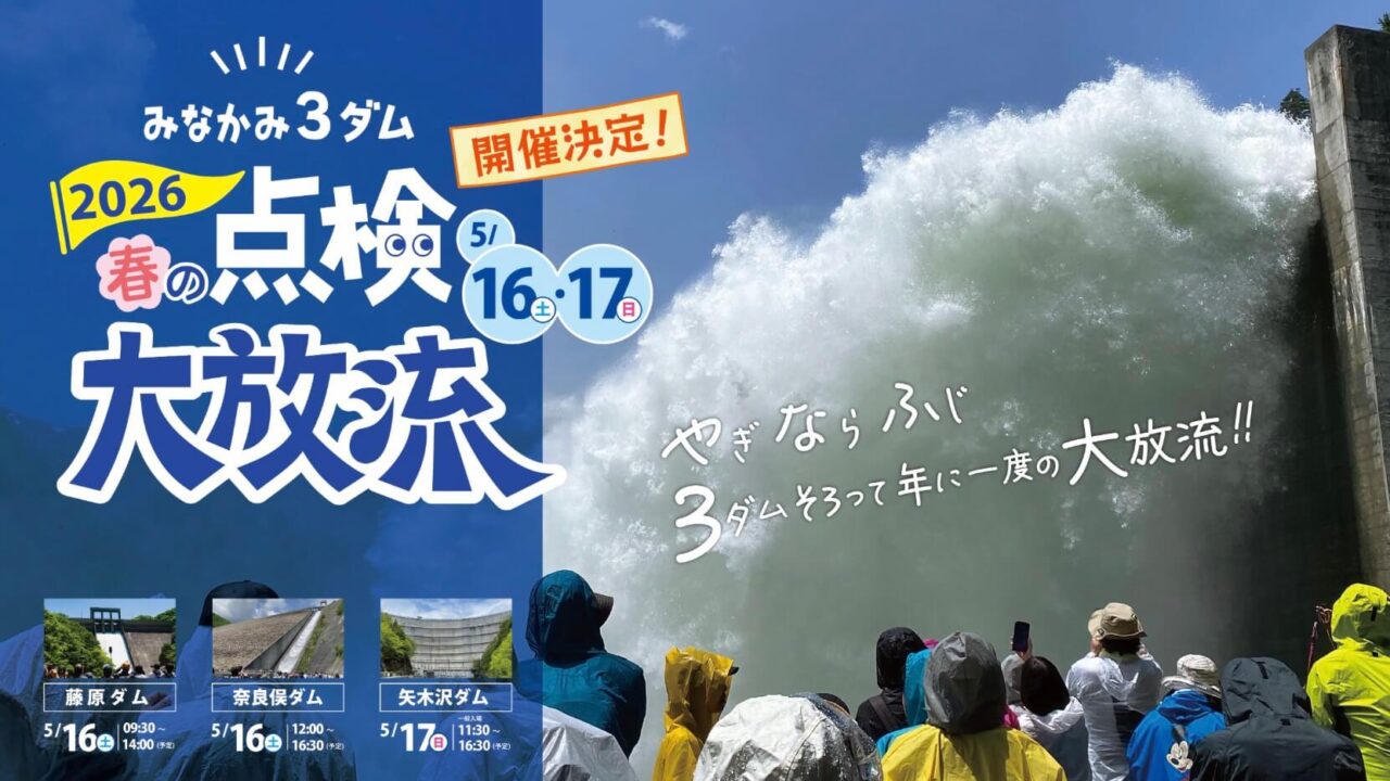 群馬県利根郡みなかみ町で、『みなかみ3ダム 春の点検大放流2026』2026年5月16日(土)・17日(日)に開催されます。