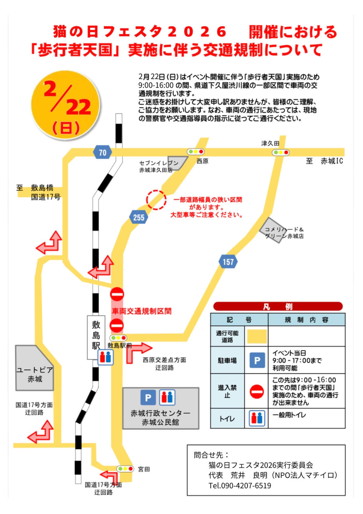 群馬県渋川市のJR敷島駅前で、猫をテーマにしたイベント『猫の日フェスタ2026』が開催されます。