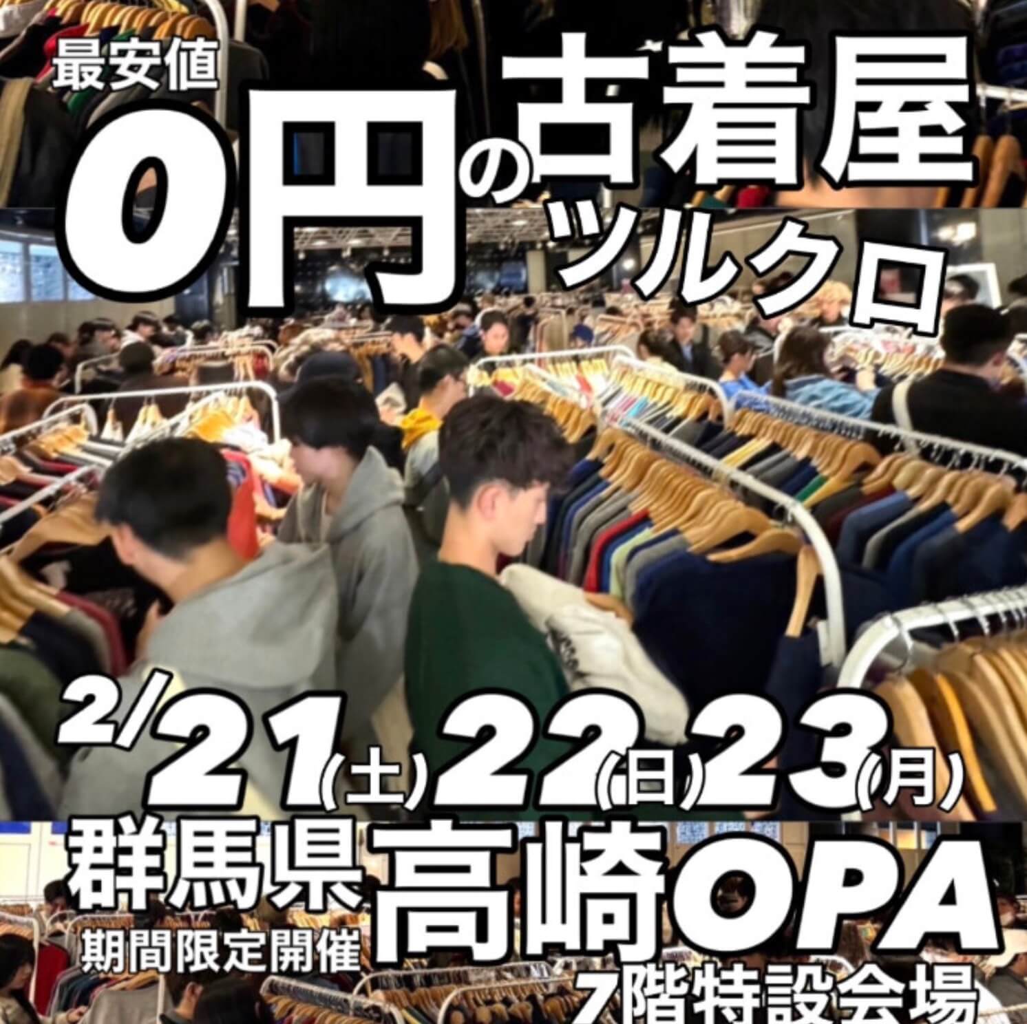 【イベント】最安値0円の古着屋『ツルクロ』高崎OPAに期間限定POP UP!2026年2月21日〜2月23日まで