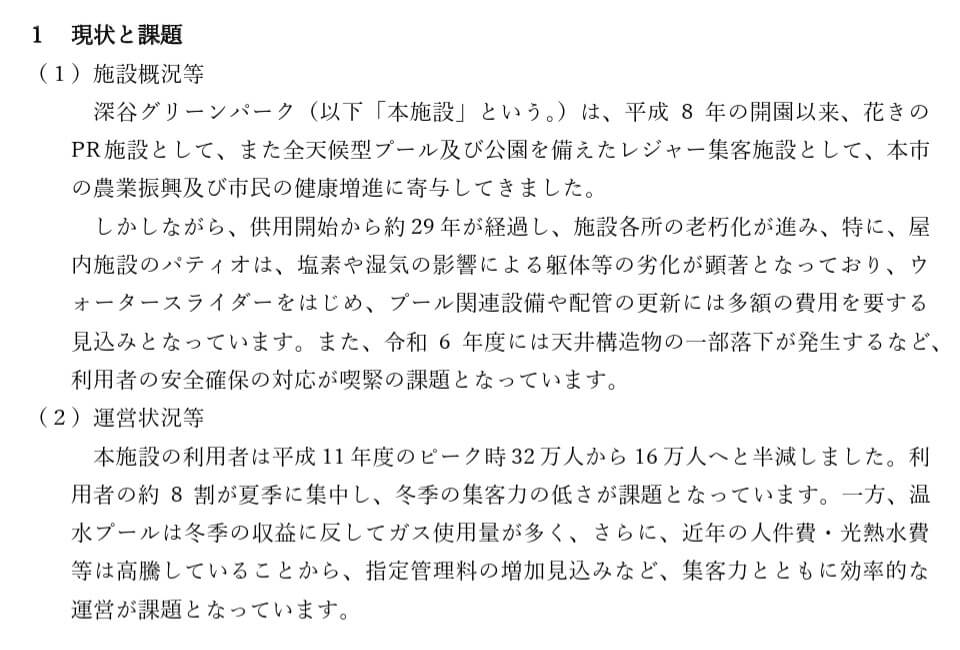深谷グリーンパークの現状と課題