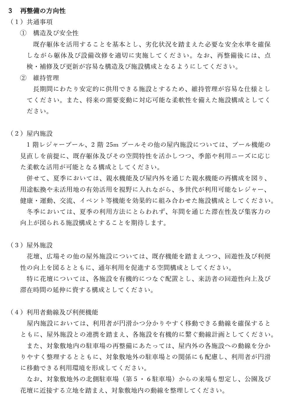 これにより、今後は公募型プロポーザル方式で事業者を募集し、施設の再整備が進められる見通しです。