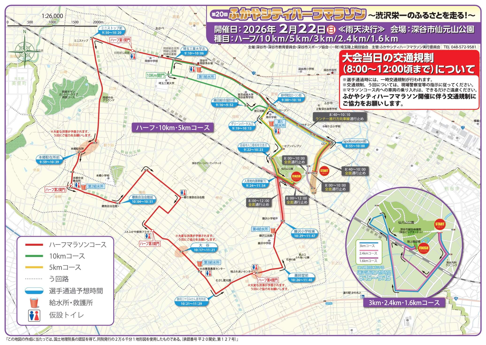 2026年2月22日(日)に開催予定の『ふかやシティハーフマラソン』に伴い、深谷市内で交通規制が実施されます。