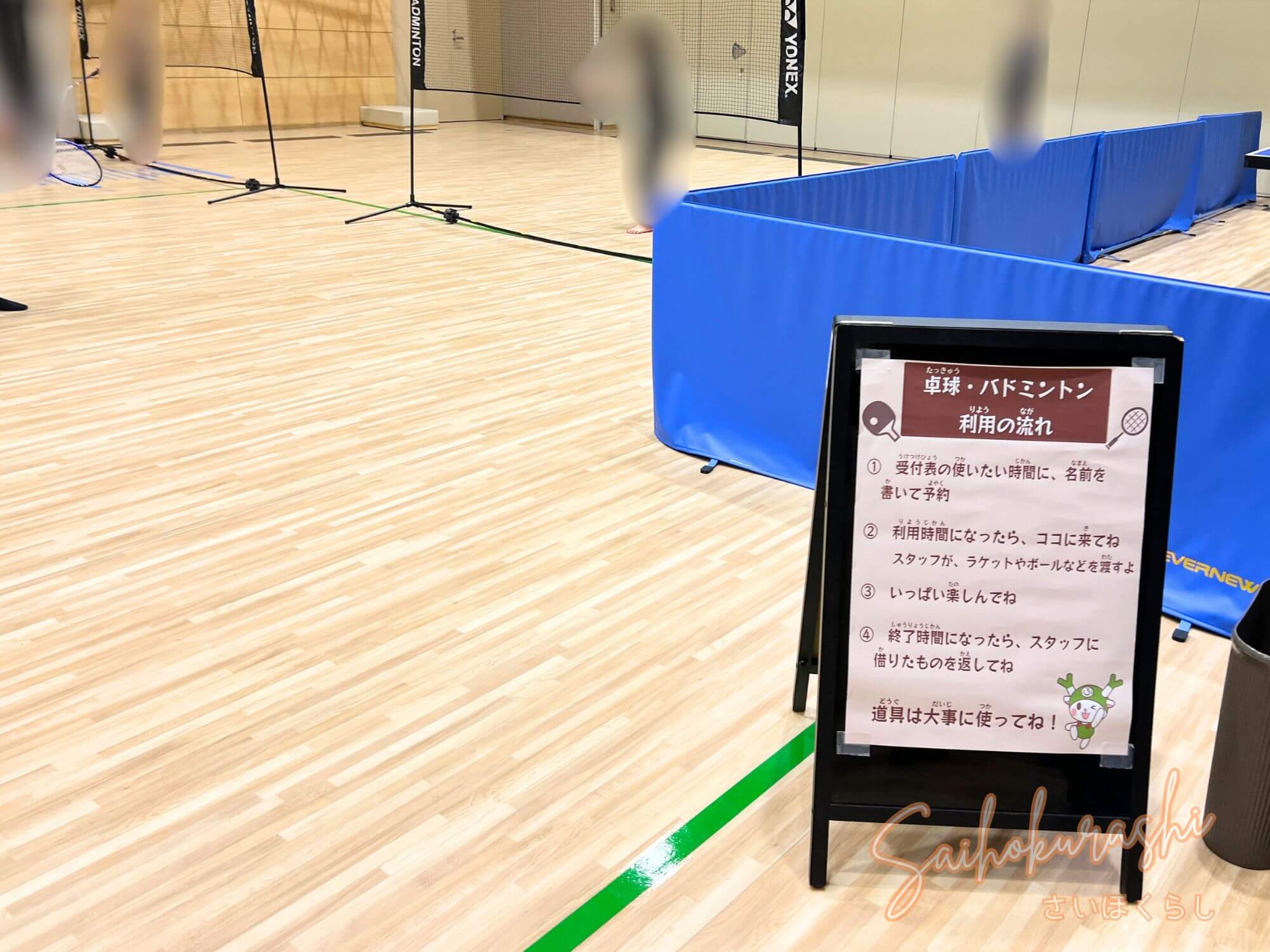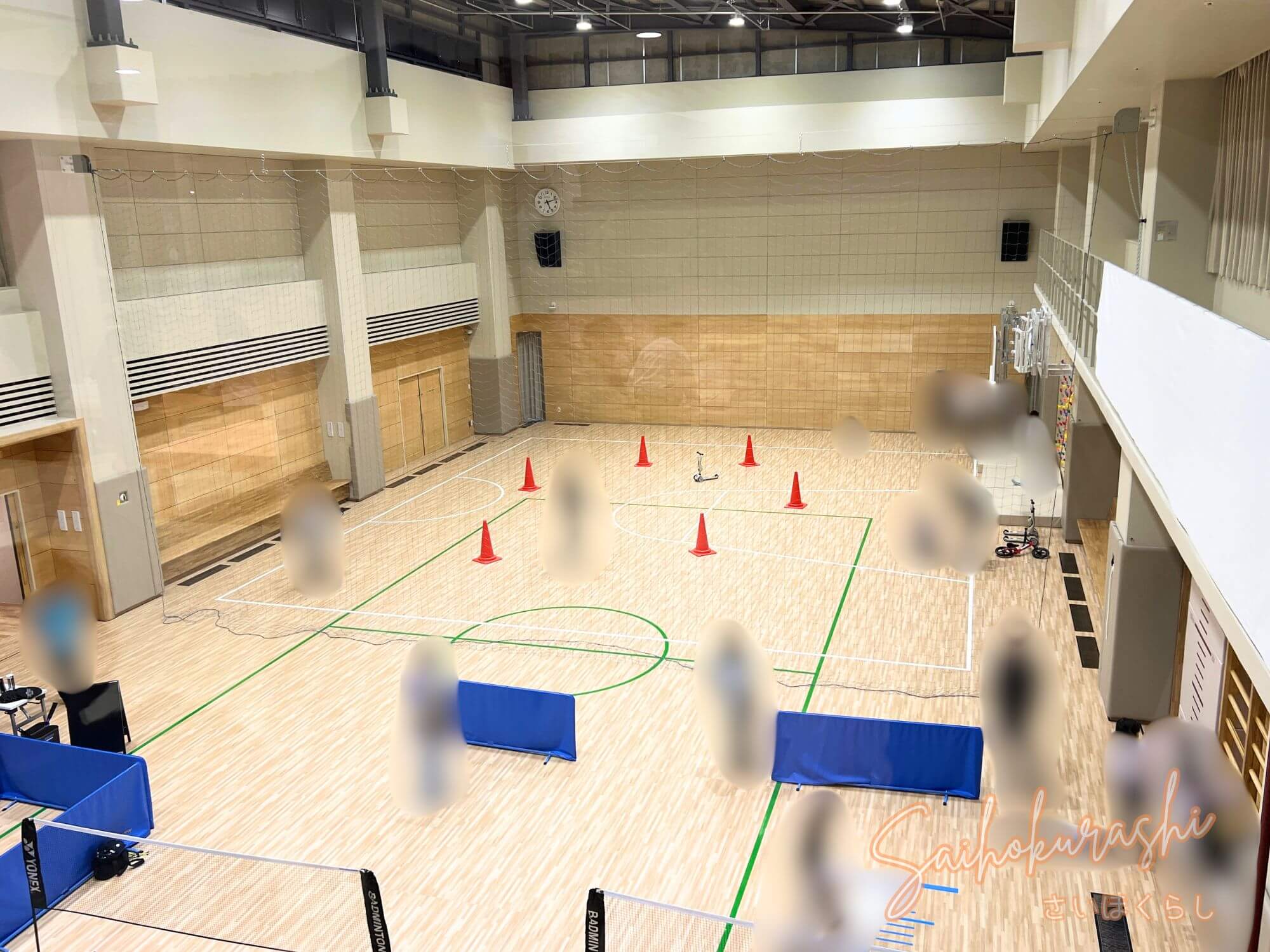 施設内には広い体育館スペースもあり、バドミントンや卓球などの軽スポーツも楽しめるようになっていました。