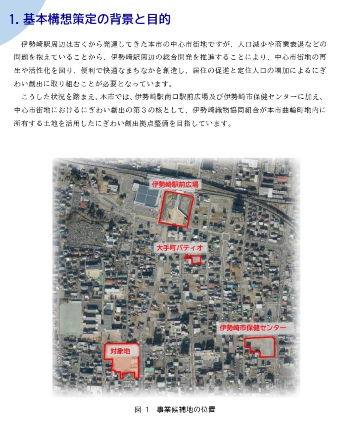 事業候補地は、伊勢崎織物協同組合が曲輪町地内に所有する土地を中心とした約9,200平方メートルを基本としており、施設全体の延床面積は約9,400平方メートルを想定しています。
