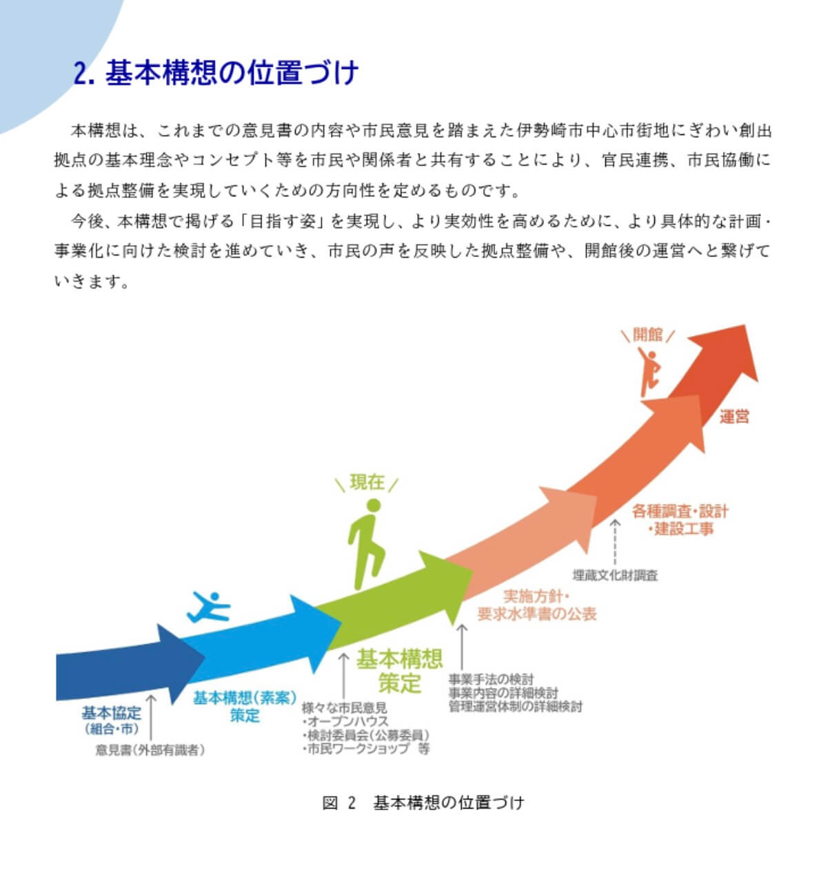 今後は、2026年度にさらに具体的な計画や事業化に向けた検討を進めるとしています。広報いせさきでは、今後の流れとして、実施方針・要求水準書の公表、各種調査・設計、建設工事、開館へと進んでいくイメージも紹介されています。