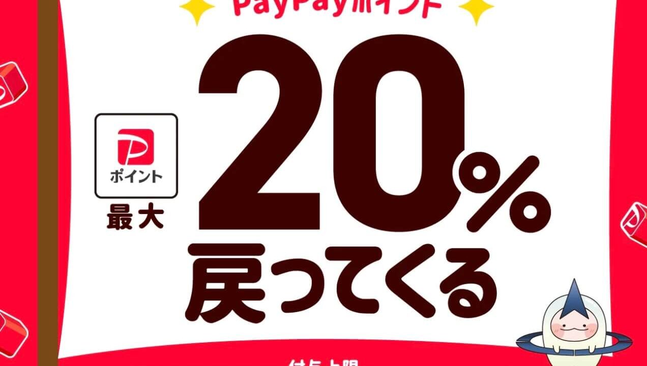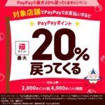 2026年5月1日(金)から5月31日(日)までの期間中、対象店舗でPayPay決済を行うと、最大20%のPayPayポイントが戻ってくるキャンペーンとなっています。