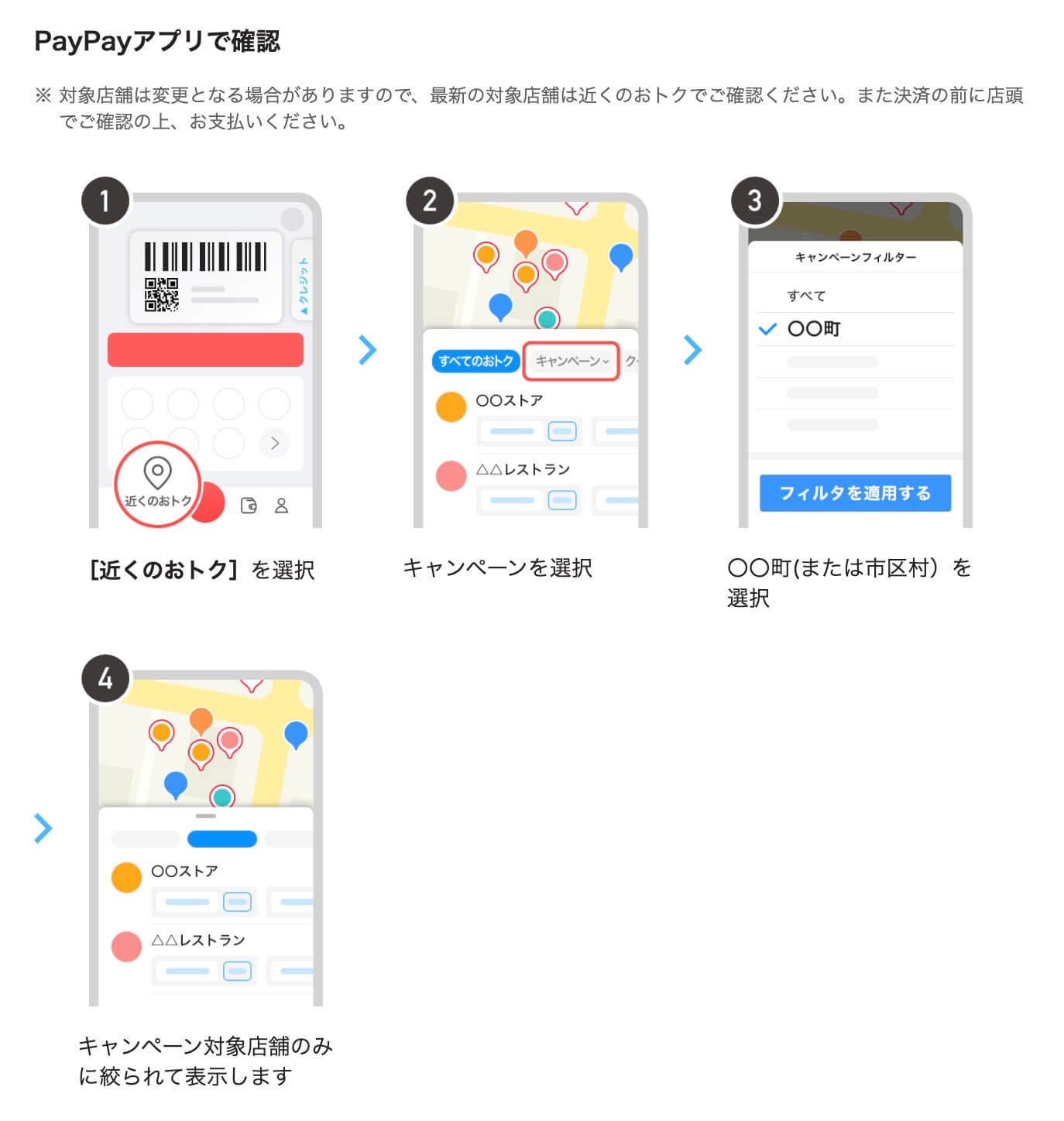 すべてのPayPay加盟店が対象になるわけではないため、利用前に確認しておくと安心です。