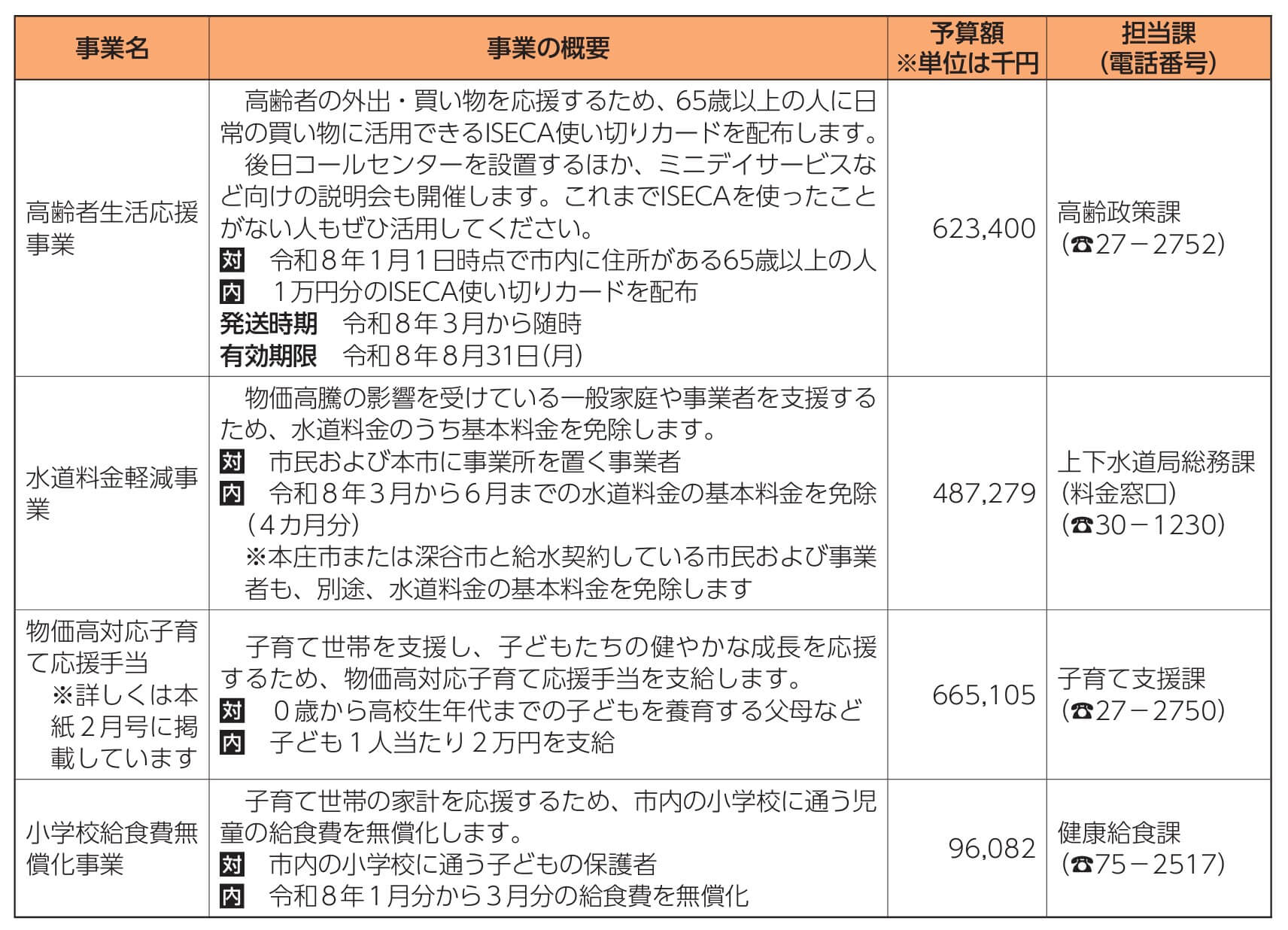 市民向けでは、特に低所得世帯や子育て世帯を対象とした給付・支援が中心となっています。