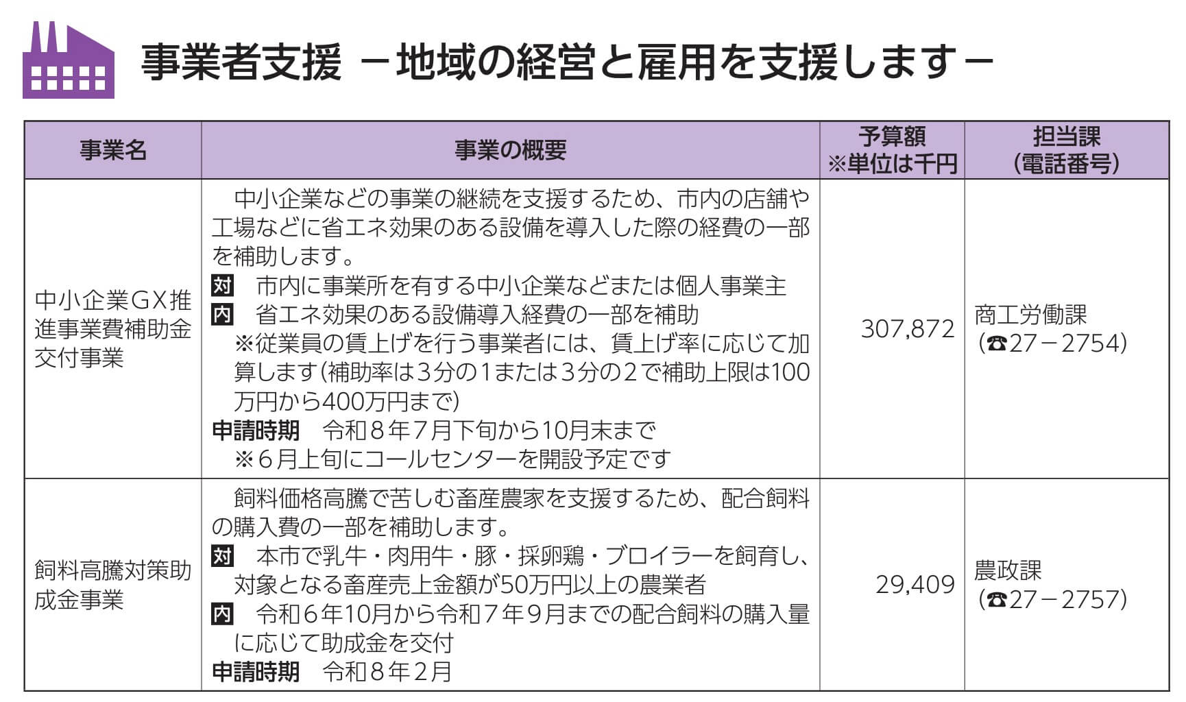 エネルギー価格や食料品の値上がりが続く中、市民や事業者の負担軽減を目的とした支援が複数実施されています。