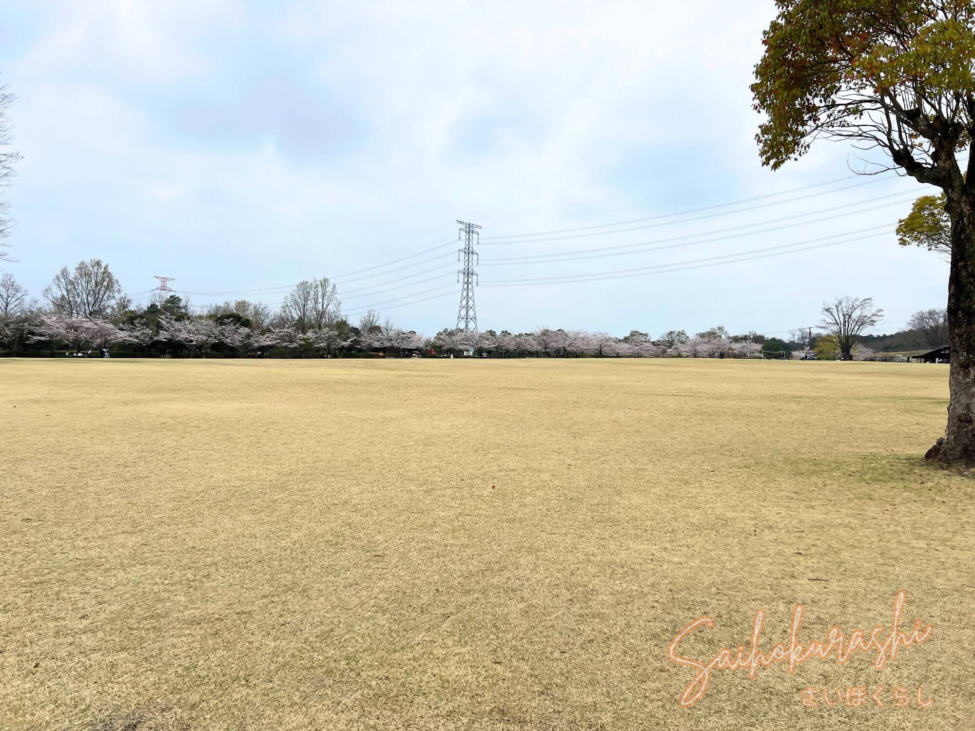 - 見どころ:広々芝生広場、桜並木、遊具も豊富