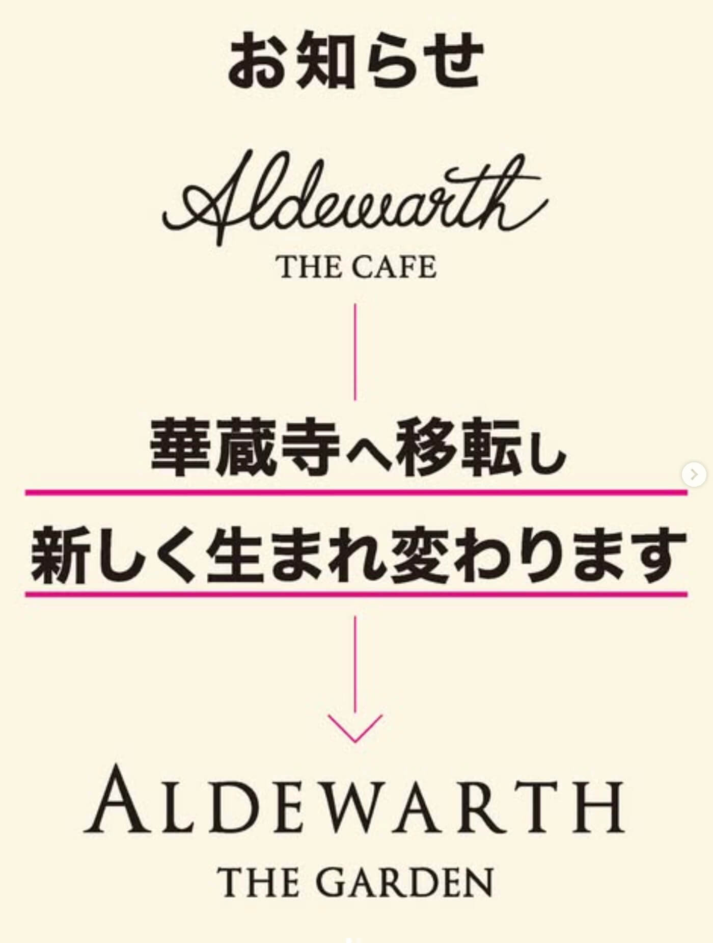 店名も『ALDEWARTH THE GARDEN』として告知されており、華蔵寺公園の新しいカフェスポットとして注目が集まりそうです。