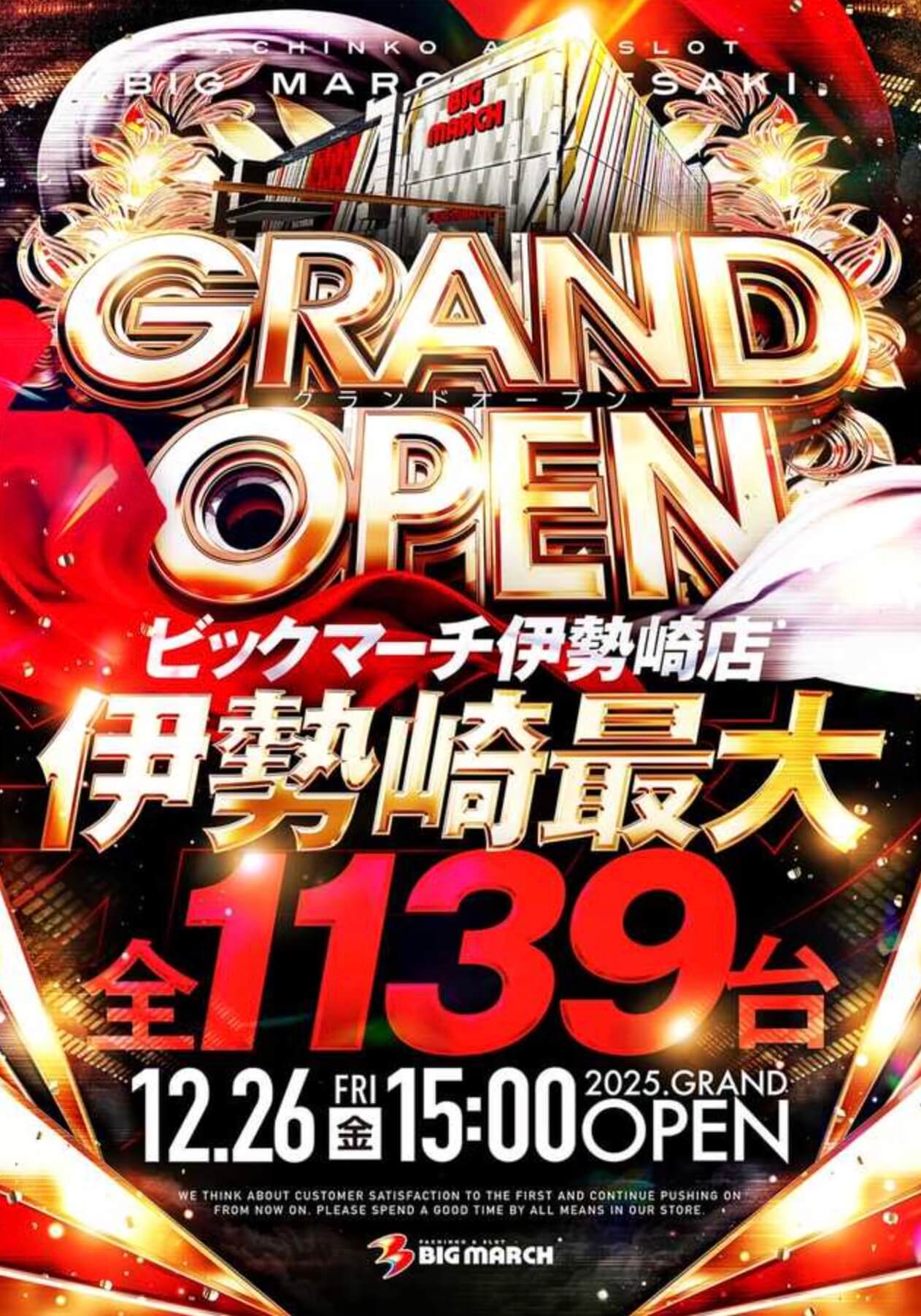 群馬県伊勢崎市三室町にパチンコ店『ビックマーチ伊勢崎店』が2025年12月26日にオープン予定です。