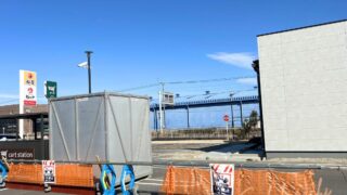 駐車場の一角が囲われ、基礎工事らしき作業や資材の搬入などが確認できましたが、現時点ではどのような店舗が入るのかは公式には発表されていません。