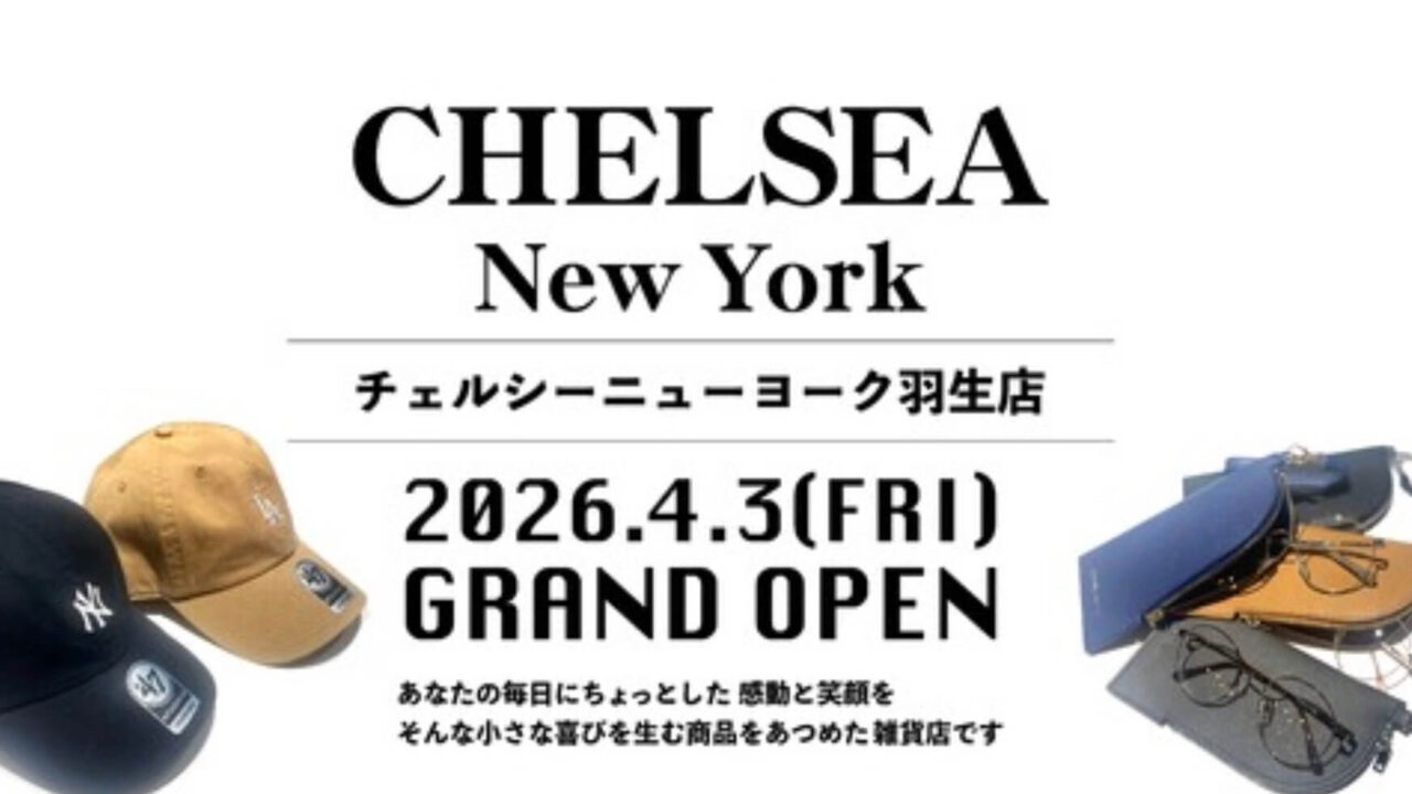 埼玉県羽生市川崎「イオンモール羽生」内に、『CHELSEA New York 羽生店』2026年4月3日(金)にオープン予定のようです。