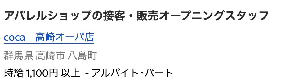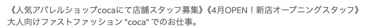 『coca 高崎オーパ店』のオープン情報(求人情報より)