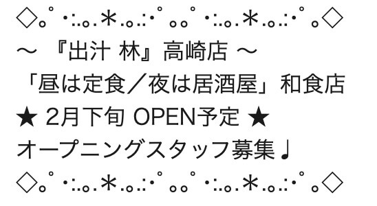 ▼『出汁林 高崎店』のオープン情報(求人情報より)