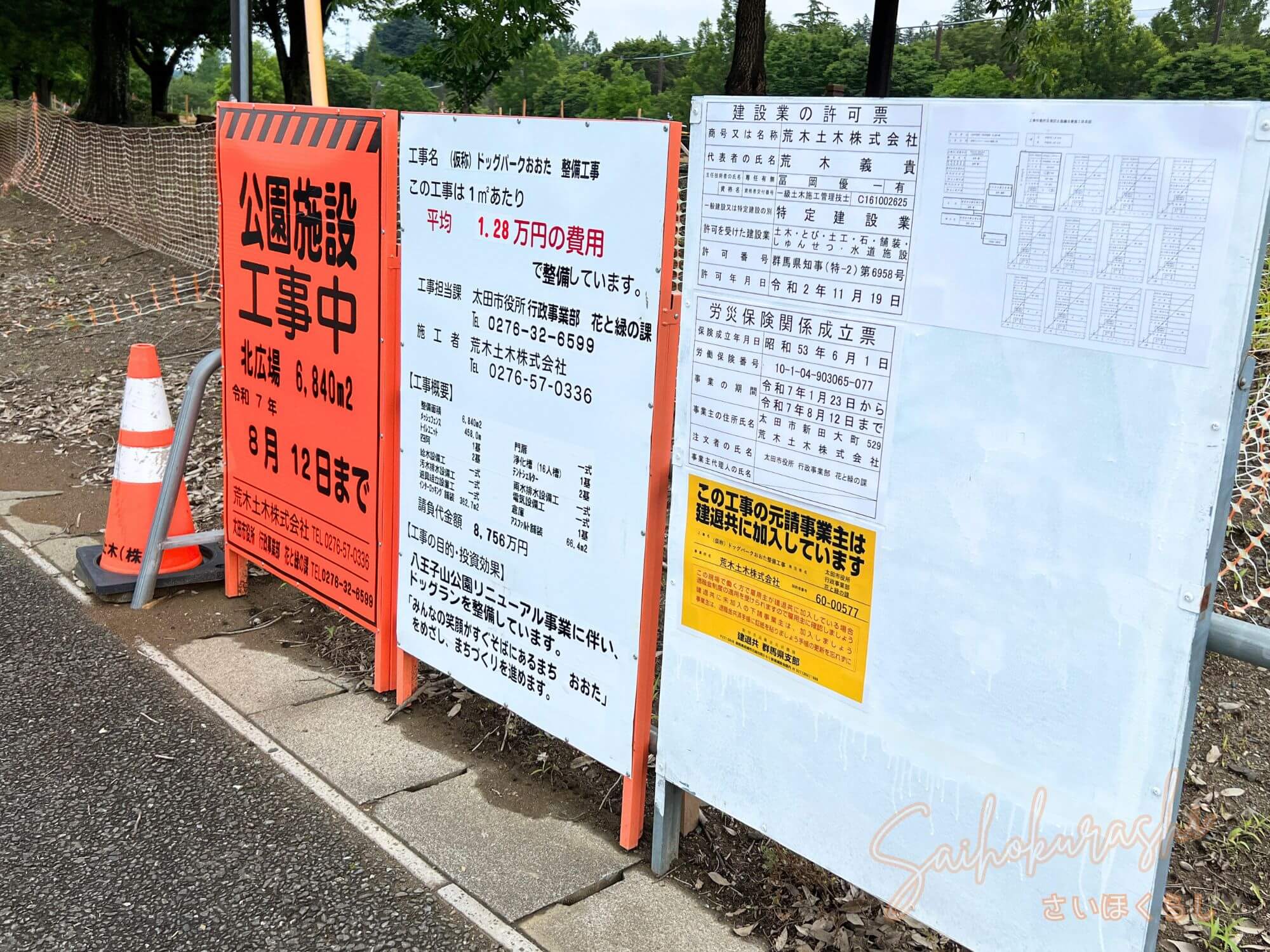 群馬県太田市の「八王子山公園(北部運動公園)」の北側で、現在『(仮称)ドッグパークおおた』の整備工事が進められています。