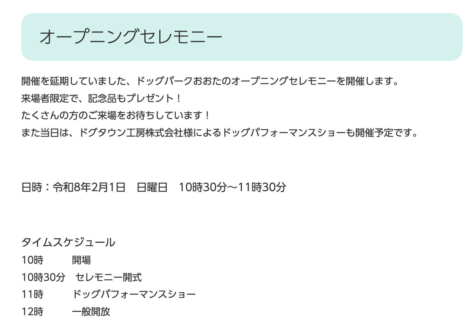 ▼『ドッグパークおおた』オープニングセレモニー開催のお知らせ