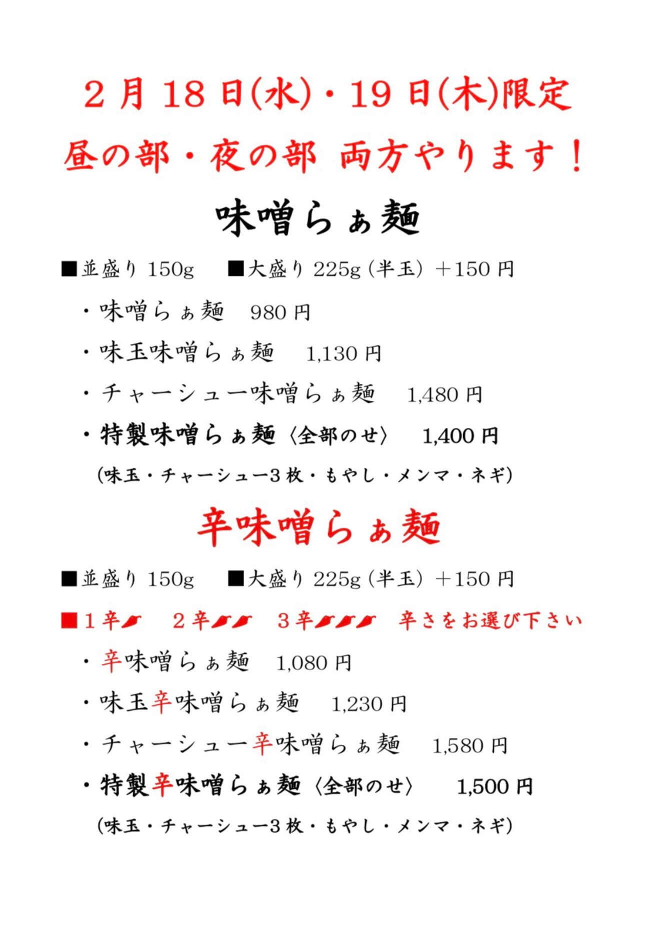 限定味噌・辛味噌らぁ麺新店舗オープン前のテスト販売を行います
