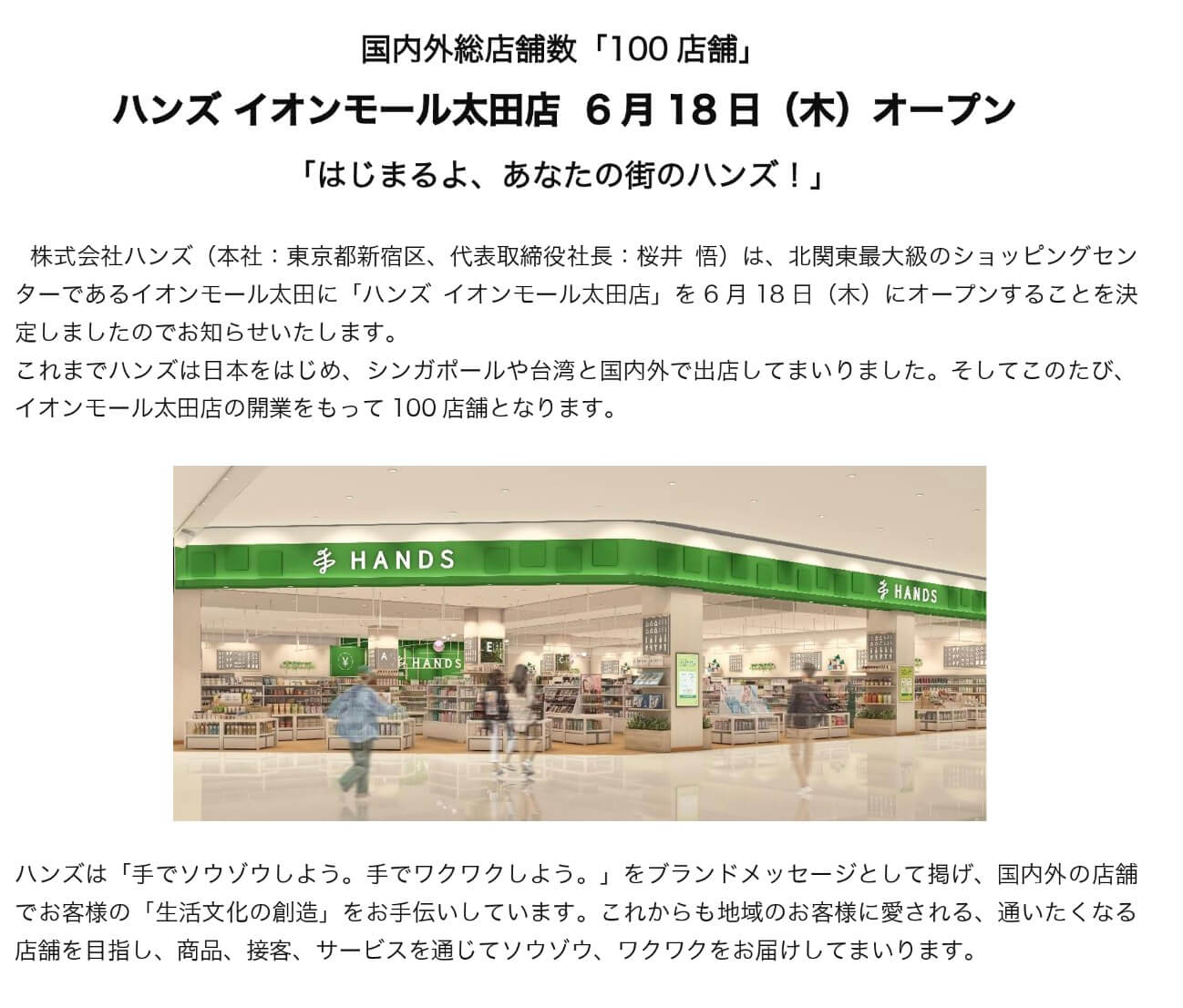 『ハンズ イオンモール太田店』のオープン情報(ハンズ公式プレスリリースより)