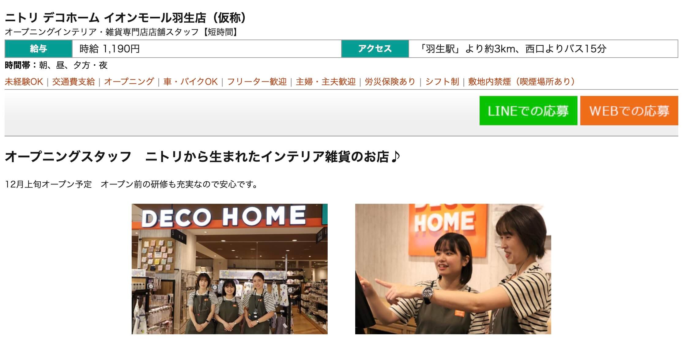 ▼『デコホーム イオンモール羽生店(仮称)』のオープン情報(求人情報より)