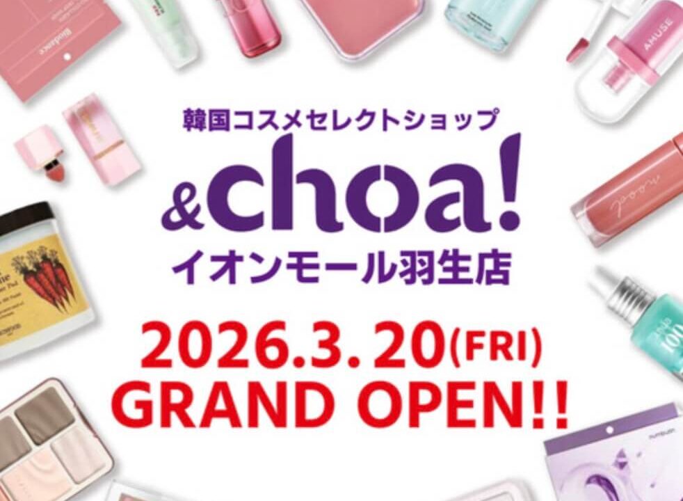 【新店】イオンモール羽生に韓国コスメ専門店『&choa!』が登場|2026年3月20日オープン予定!